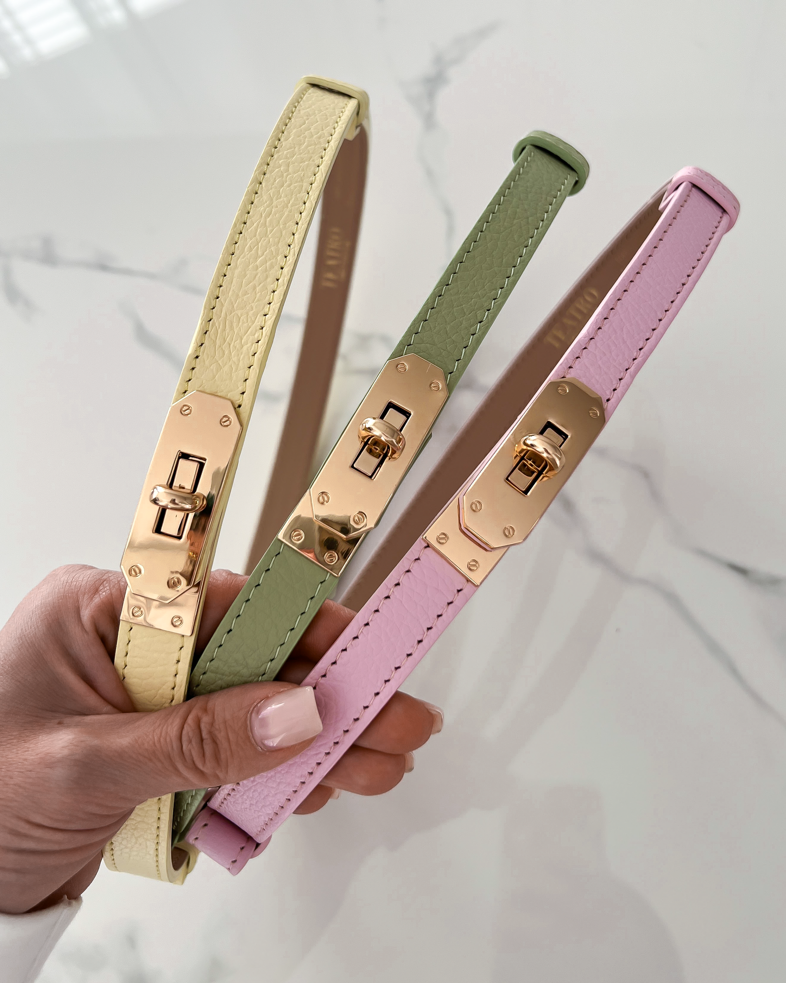 De suede riem is gemaakt van hoogwaardig echt leer en afgewerkt met een elegante goudkleurige draaisluiting. Dankzij het slimme schuifsysteem is de riem volledig verstelbaar, zodat hij comfortabel op elke gewenste maat gedragen kan worden.